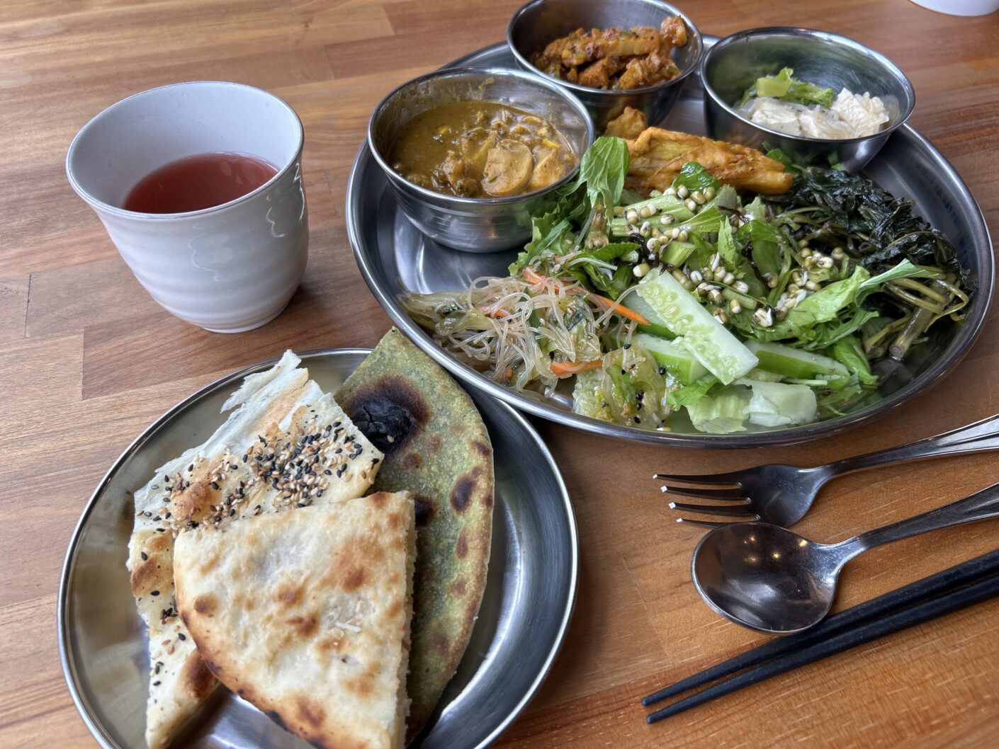 最近は月に1〜3回行ってる、大好きな「ハヴァナダイニング」さんのベジタリアンランチ。新潟市中央区の水族館「マリンピア日本海」のすぐ近く。この日は初めて毎月1日の「ナンの日」。「いろんなナンが食べ放題…ってそんなに食べられへんわ〜」と思ったけど食べられました(笑)ほうれん草のナンとか、間に甘いココナッツを挟んだナンとか、小さいサイズでいろいろ提供してくれるのがすごく良かった!