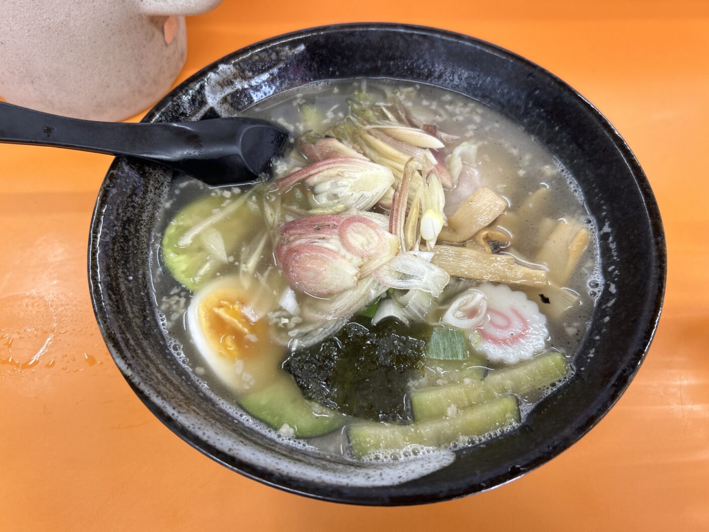 Xで見かけて「食べたい!」と思った、新潟市中央区本町通りの「たごさく」さんの「鯨汁ラーメン」。夏季限定。食べれて良かった!ナスとミョウガがたくさん入っててヘルシーだった!美味しかったー