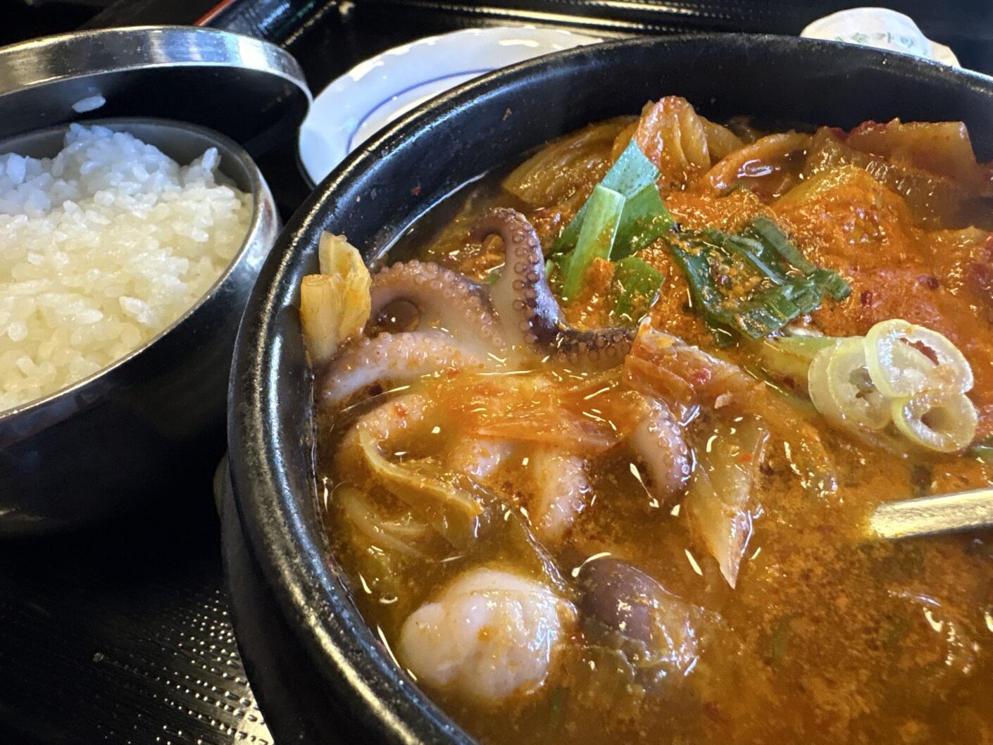 新潟市中央区出来島の韓国料理屋さん「多来(タレー)」さんの、イイダコのチゲ。初めて食べたけど、タコの頭の方がプリンプリンで、中の味噌かな?も相まって美味しかった〜