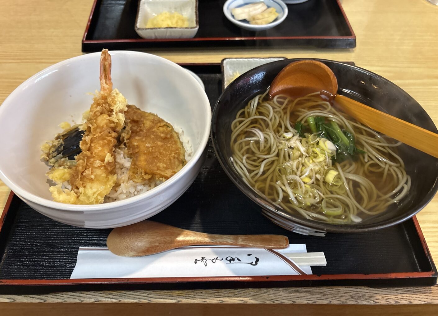 こちらの写真は取材後、閉店15分前に駆け込んだお蕎麦屋さんの「天丼セット」。天丼のタレが甘めでサクサクで、私好みでとっても美味しかった。「もうすぐお昼の時間終わりですけど、いいですか…?」って恐る恐る入ったら「いいですよ〜」ってお母さんが優しく迎えてくれて嬉しかった。