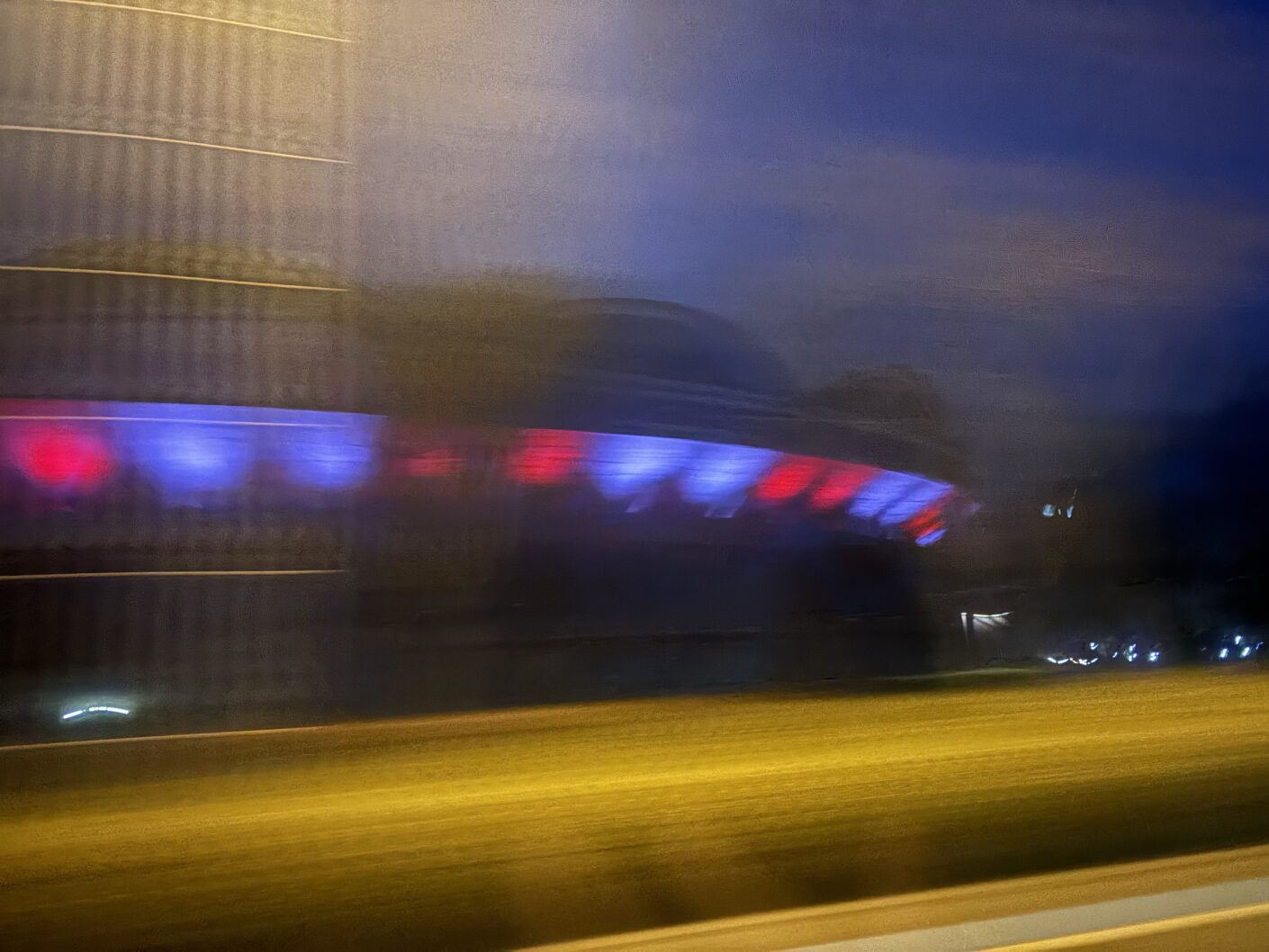 こちらは写真は昨日車から撮った、デンカビッグスワンスタジアム。夫曰く「白と赤のお正月カラー」にライトアップされているそうですが、宇宙船にしか見えなくて笑えました。…今思うと、ちょっと猗窩座っぽいライティングですよね?(写真に撮ると白がどうしても青になる)